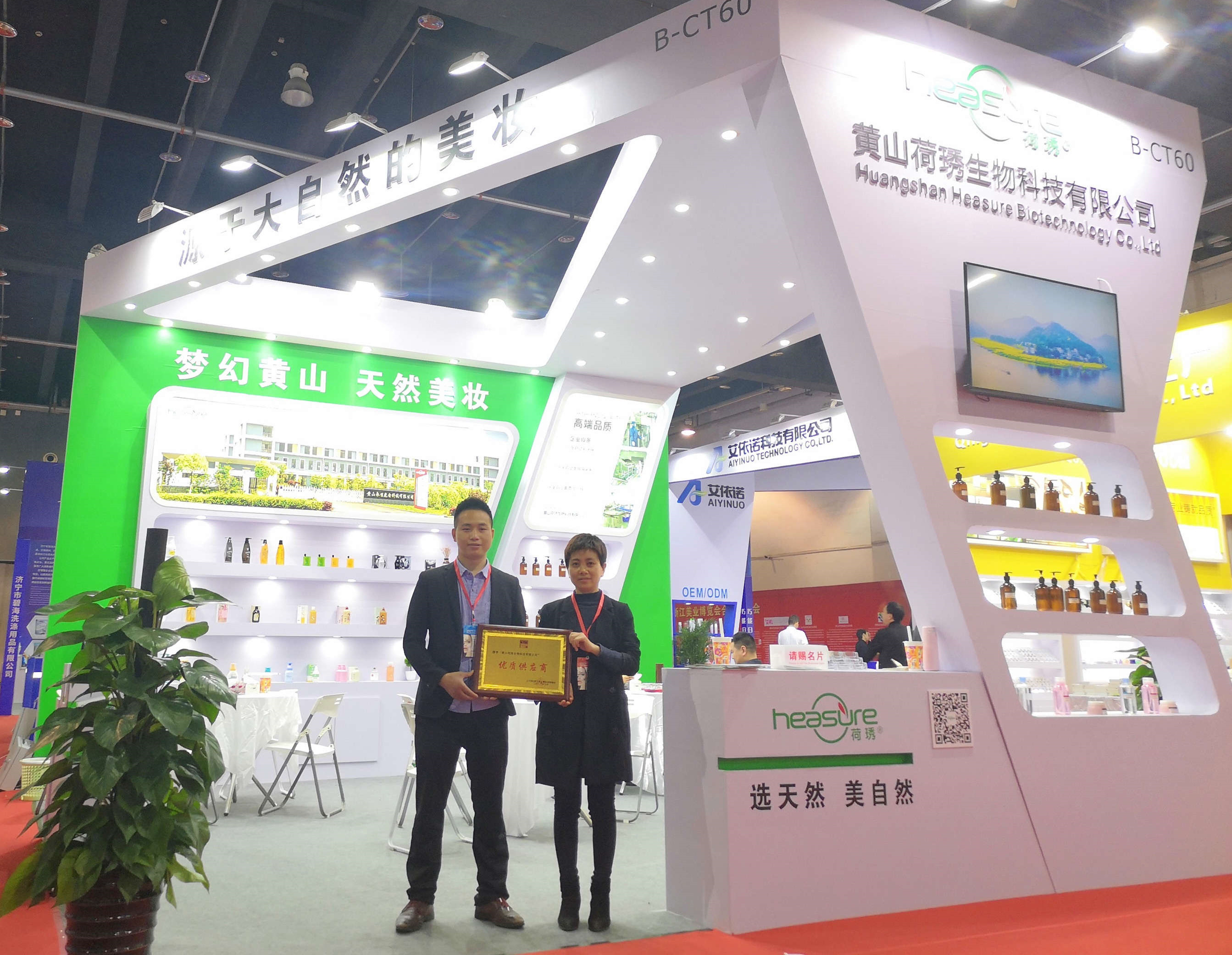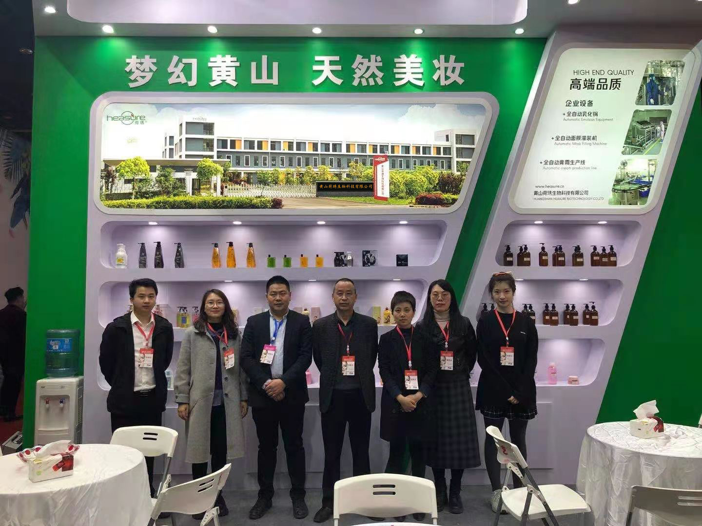 黃山荷琇以“夢幻黃山,天然美妝”為展會主題,攜富有黃山地域特色的化妝品亮相本屆美博會。新穎的展臺、特色的產(chǎn)品,吸引了一大批國際客商駐足體驗、咨詢。現(xiàn)場氣氛火爆。